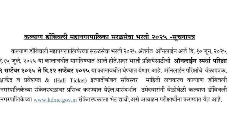कल्याण डोंबिवली महानगरपालिका सरळ सेवा भरती 2025 – ऑनलाईन परीक्षा व Hall Ticket अपडेट्स